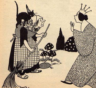 Fue la reina a une bruja vieja y le consultó. La bruja dijo que crecía una planta extraña en el prado cerca del castillo. La planta tenía una cualidad especial. Cuando