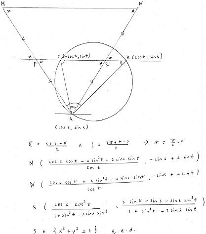 Let M be the center of ω1. We find M((ab2-2b+tb+ta2b-a)/(2ab-2),(ta2b2-2ab+tb2+1-b2)/(2ab-2)) and X((ta2b+tab2-a-b)/(ab-1),(tb2+tab-ab-b2)/(ab-1)).