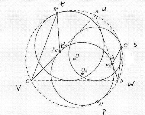 Furthermore, we find from the coordinates of A' those of C' by substituting for u,v,w (simultaneously) v,w,u (respectively) and those of B'